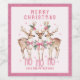 Merry Christmas Reindeer Personalised Name Festive Party Personalised Name Wine Labels Stickers features festive reindeer with pink bows and floral accents with the text "Merry Christmas" in modern pink calligraphy script typography with your personalised name. Perfect personalised gift for Christmas and the holidays for family and friends. Designed by ©2024 Evco Holidays www.zazzle.com/store/evcoholidays