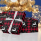 Merry Christmas Reindeer Red Black Buffalo Check Wrapping Paper