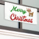 Banner with Merry Christmas in 3D green and red text and a reindeer. Available in several sizes for indoor and outdoor.