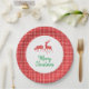 Merry Christmas Reindeer Red White Twill Plaid Paper Plate