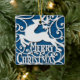 Merry Christmas Reindeer Silhouettes Snowflake Ceramic Ornament