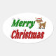 Stickers with Merry Christmas in 3D green and red text and Christmas reindeer. Stickers are available in several shapes.