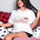 Merry Christmas Retro 80's Font Santa Hat Pink Red T-Shirt