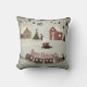 Merry Christmas retro cartoon landscape train houses city town tree decor