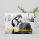 Merry Christmas card with your custom photo on the front and real foil text "Merry Christmas" in a bold, retro font. Deep dark green or custom color back.