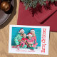 merry christmas retro red script holiday photo Note Card two sided card,on the back side holiday message