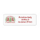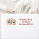 Festive Scandinavian-style return address label featuring two red reindeer, a green Christmas tree, and elegant scroll accents. Personalised with your name and address, this design is perfect for adding a cheerful holiday touch to Christmas cards, party invitations, and seasonal mailings. A great choice for those who love Nordic and folk art holiday decor.
