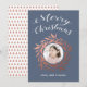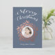 Merry Christmas Rose Gold Wreath Blue White Photo Holiday Card