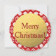 Merry Christmas! Round Christmas Card. Gold foil look, red and white poinsettia pattern, excellent Christmas card. Folks can punch a hole in it and hang it on the tree as an ornament.