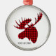 Merry Christmas Round Ornament-Plaid Moose Metal Tree Decoration