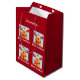 Modern Christmas gift bag for kids, with Rudolph the Reindeer, the greeting "Merry Christmas," and a personalised name. On a Xmas red background.