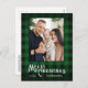 Merry Christmas Rustic Green Buffalo Plaid Photo Holiday Postcard