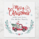 Merry Christmas Rustic Red Truck Winter Floral Wine Label