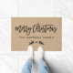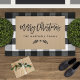 This beautiful holiday doormat features "Merry Christmas" in bold black brush script with your family name in clean block lettering and a delicate laurel branch accent, all on a warm rustic tan textured background. The minimalist design pairs effortlessly with farmhouse, modern, or traditional holiday porch decor. Family name is fully customizable.