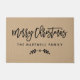 Merry Christmas Rustic Tan Laurel Family Name Doormat