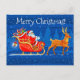 Merry Christmas Santa and Sleigh with Reindeer Holiday Postcard