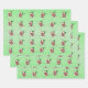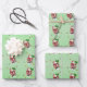 Merry Christmas Santa Animals Tree Bows Green Wrapping Paper Sheet