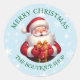 Add a festive touch to your business packaging this holiday season with these charming custom Christmas stickers! Featuring a cheerful Santa Claus holding a gift against a snowy background, these round stickers are perfect for spreading holiday cheer while promoting your brand.