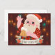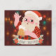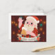 Merry Christmas Santa Claus holding a beer string light background festive design postcard.