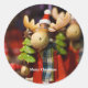 Merry Christmas Santa Claus Moose Classic Round Sticker