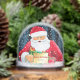 This beautiful personalised snow globe is decorated with an amazing illustration of Santa Claus bringing gifts under the snow. He’s very happily drawn with a good face and beautiful red and white clothes.