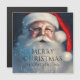 Merry Christmas Santa Festive Winter Holiday Christmas Greeting Cards features Santa Claus with sprinkles of snow with the text "Merry Christmas" with your personalised name below. Perfect for Christmas holiday greetings for family and friends. Designed by © Evco Holidays www.zazzle.com/store/evcoholidays