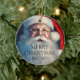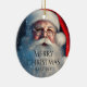 Merry Christmas Santa Festive Winter Holiday Ornaments features Santa Claus with sprinkles of snow with the text "Merry Christmas" and your personalised name on the front. Perfect for Christmas holiday greeting cards for family and friends. Designed by © Evco Holidays www.zazzle.com/store/evcoholidays