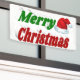 Banner with Merry Christmas in 3D green and red text and Santa's hat. Available in several sizes for indoor and outdoor.