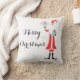 Holiday throw pillow features Santa Clause with gifts and "Merry Christmas" which can be changed to your custom text. Back of pillow features red diagonal candy cane stripes.