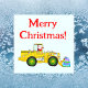 Merry Christmas Santa In Bulldozer Delivering Gift