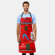 Merry Christmas is written at the top in sky blue script. Jolly Santa Claus, Blue Eyed Reindeer, Christmas Trees, Candy Canes, Reindeer pattern. Christmas themed typography wording in script and fun fonts decorate add to the festive flair. Red background with black silver stripes. Childhood memories baking fun. NOTE: Designed for Medium and Large sizes. See store for design in size Small.