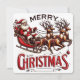 Merry Christmas Santa Sleigh & Reindeer Vintage Invitation