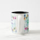 I believe in Santa coffee mug with multicolored Christmas lights and trees