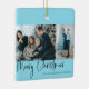 Merry Christmas Script 2 Photo Collage Blue Ceramic Ornament