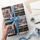 Merry Christmas Script Black Gold Photo Collage Wrapping Paper