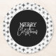 Merry Christmas Script Black Snowflakes Round Paper Coaster