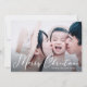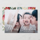 This beautiful Christmas greeting features a festive red floral print with faux gold leaves and greenery on the back, and elegant white Merry Christmas script with one full photo on the front of the card.