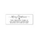 Modern Stylish Elegant Merry Christmas Script Holiday Return Address Rubber Stamp. Features a „Merry Christmas” text in a hand lettered calligraphy swash tail font script and a little love heart motif and address info. Easy to add your family name and return address.