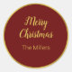Merry Christmas Script Name Dark Red and Gold Classic Round Sticker