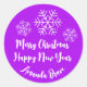 Merry Christmas Script Name Snowflake Grey Purple Classic Round Sticker