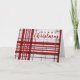 Merry Christmas Script Plaid Red Grey Pattern Holiday Card