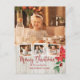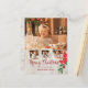 Merry Christmas Script, Poinsettia, Rustic 4-Photo Holiday Postcard