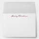 Elegant “Merry Christmas” traditional red with script on front and inside envelope. Pretty envelope for personal or business cards.