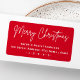 Red Christmas return address labels with white text "Merry Christmas" in a handwritten style font and your name and return address below.