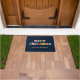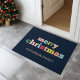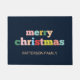 Colourful, festive, typographic "Merry Christmas" blue, holiday door mat. Customise with your family signature.