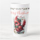 Merry Christmas Script with Whimsical Holiday Bird Latte Mug
