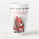 Merry Christmas Script with Whimsical Holiday Bird Latte Mug