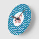 Merry Christmas Seamless Pattern Blue Texture Round Clock