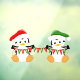 cute, adorable cartoon penguins holding red and green flags that says Merry Christmas. penguins have a green hat and a red hat.