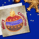 Vibrant colored letters, trees, holly and cancy canes in a cheerful message suitable for a non-religious holiday greeting. I especially liked it on the black background which made the design pop.